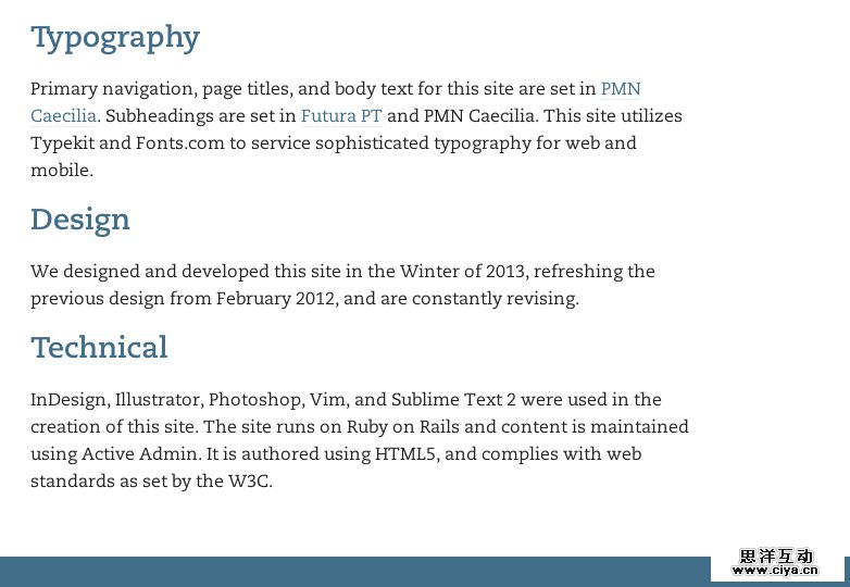 在欧洲,在书中使用Colophons(题跋)可以追溯到15世纪的时候(中国就早很多了),不过这个网站是为了将其运用到网站上去。这次,Neoteric Design分享了他们网站的制作笔记——各个部分的功能,从字体软件到编程语言和内容管理系统。如果访客想知道一个网站是如何构建起来的,那么这个带题跋的笔记可以帮助用户方便快捷得了解这个网站的构建过程,满足好奇心。