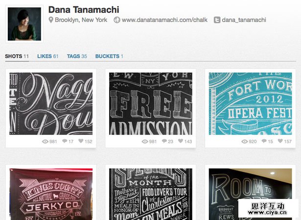 正如我前面提到的,用户使用Dribbble的方面千奇百怪各不相同,所以很难从中选择一个。最让我激动的图片经常出现,因为很多东西突然就在社区里火了,比如:Rogie King的”公益:水” 和 “你生活在那一阶层?”。最近我又被Dana Tanamachi设计的字体给震惊了,她用粉笔画出了一种印刷字体供商业使用。正是这种天才的存在才使Dribbble如此的与众不同超凡脱俗。