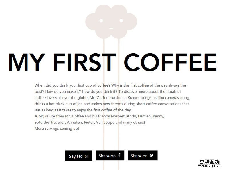 美图和故事永远是最抓人的,而这个网站就是以故事的形式为你讲述咖啡是从哪里来的。扁平风的插画+视差滚动效果+引人入胜的故事,并不新颖的手法创造出令人难忘的网页,大抵就是如此了。