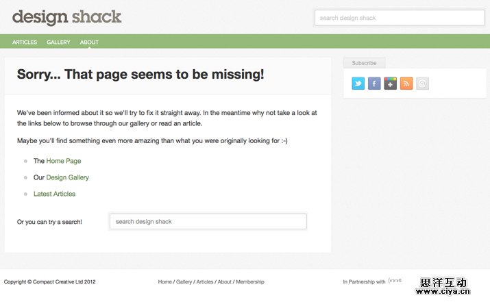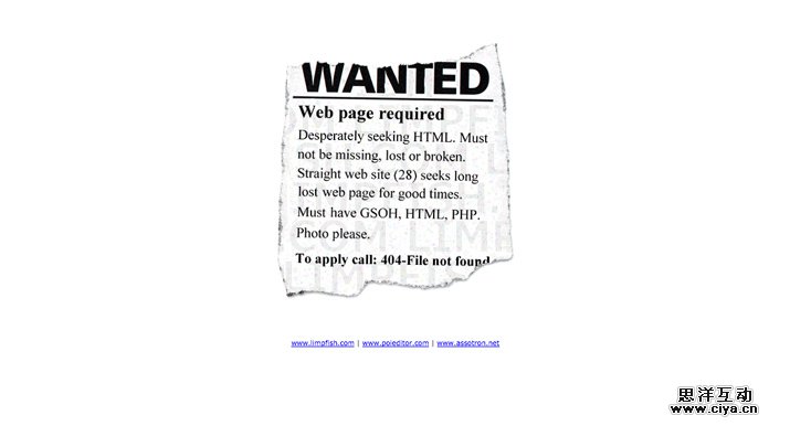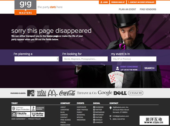 把一个因为错误而形成的页面设计的有趣而有创意很难,但不是不可能。设计出好的404页面需要你结合简约、实用,同时也少不了设计天分。