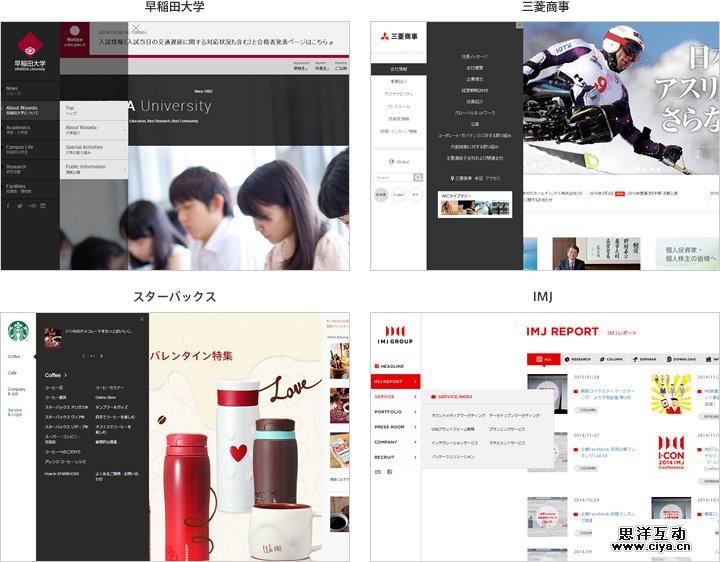 但是,必须注意的是这样新式布局,对于一般的用户有很难留下第一印象的危险性。另外,对于菜单的多层级化的时候,连接和鼠标经过引出下一级菜单的操作是必要的,因此提高了操作的难易度。