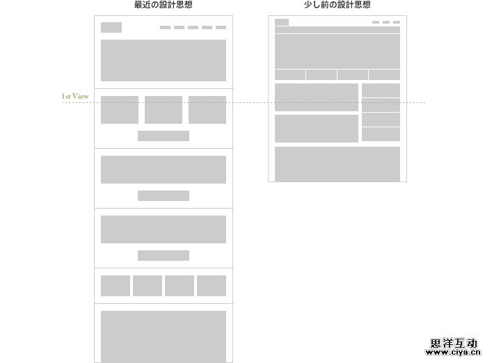 曾经左右两栏布局的PC网站是UI设计主流。在电子商务网站等有大量信息的网站中,3栏布局也很常见。但是现在去掉左右栏,只焦点于内容部分,1栏布局正在增加。