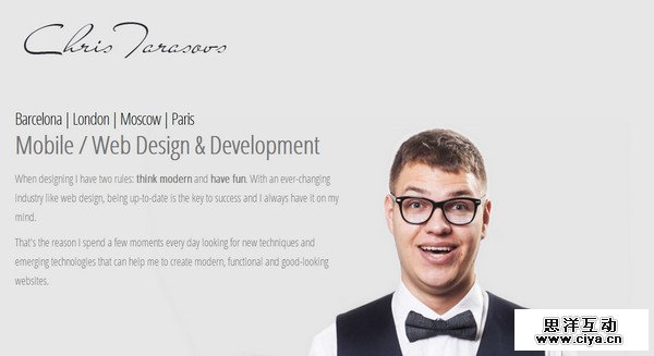 如何有效地展现一个设计师的个人魅力?仔细研究一下Chris Tarasovs的这个个人站点你就会明白。