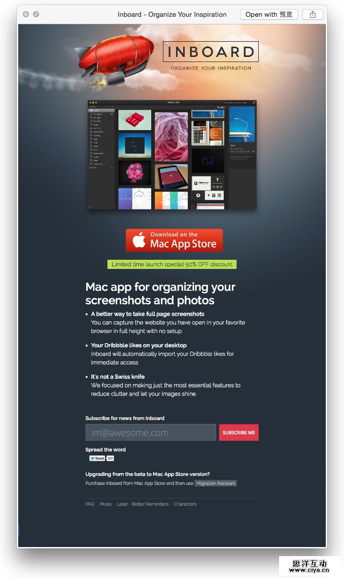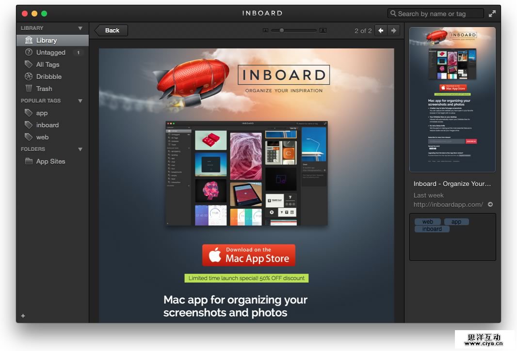Mac App Store下载链接:Mac App Store – Inboard – Image, Screenshot and Photo Organizer