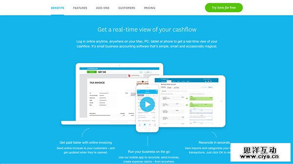 Xero 是一款在线的账户管理软件,但是这个网站真的是将设计用心做好了。信息全面,组织周密,设计感十足!