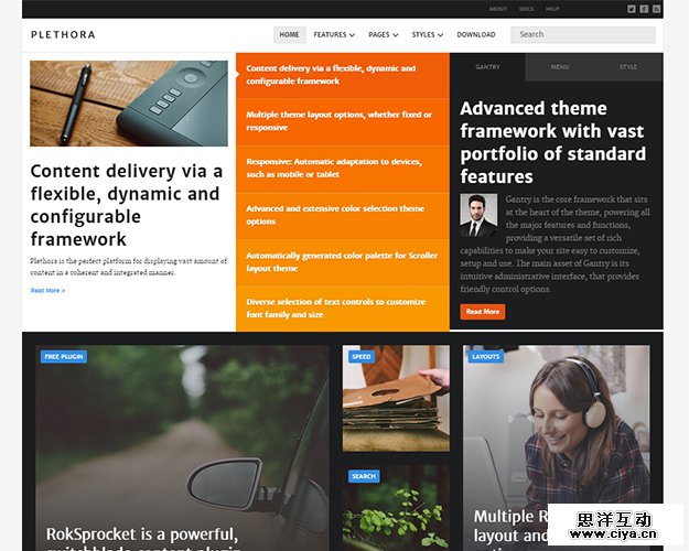 如果你的网站需要展示大量的内容的话,Plethora 主题是你额首选,它完全就是为此而生的。所以,对于新闻、杂志等内容驱动的网站而言,这个主题非常有用。