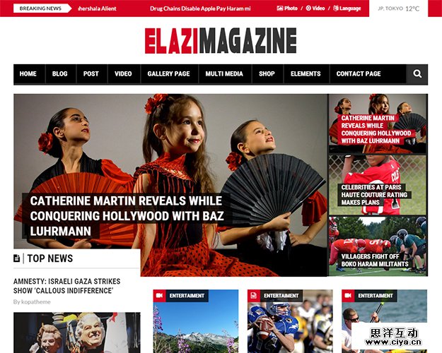 Elazi 是一个典型的响应式杂志主题,如果你的网站是体育、时尚、旅游、美食或其他高分享率内容的站点,那么这个高效快速的主题绝对符合你的需求。