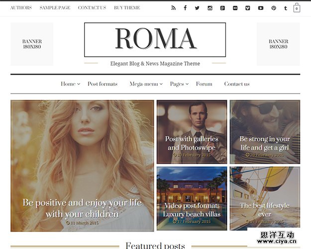 ROMA 是一个优雅的博客和新闻主题,同时也适合其他类型的商业和创意网站,主题基于Twitter旗下的Bootstrap 框架搭建,针对移动端和桌面平台进行了诸多不错的优化。