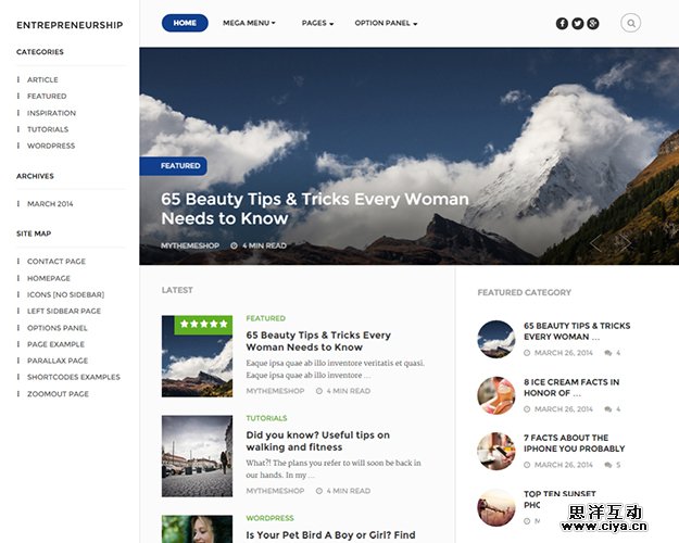 Entrepreneurship 是一个令人惊艳的杂志主题,拥有多种模板和许多实用的功能,整合了社交媒体,搜索引擎优化等等等等。你可以供稿MyThemeShop来购买这一主题。