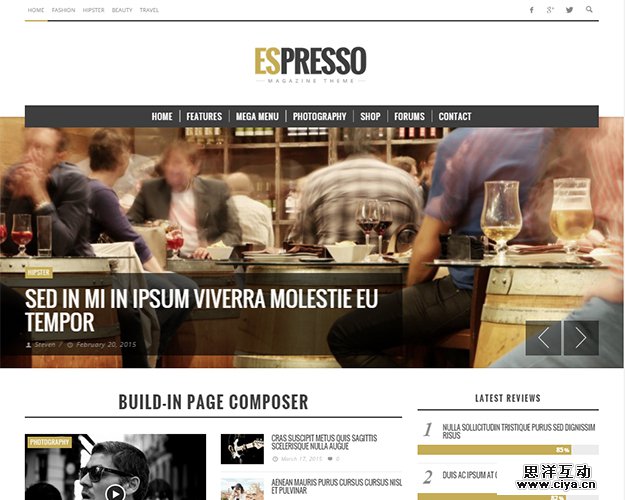 ESPRESSO 也是一个现代的博客主题,多彩和创意是它的卖点。这个主题提供六种不同类型的页头,方面满足各种不同用户的需求。