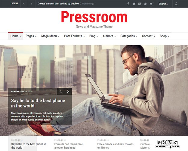 Pressroom 是一个可定制性极高的响应式主题,适用于新闻和评论为主的网站。网站能兼容的多媒体内容和类型很多,可定制的细节也足够你将它定制成任何你要的样子。