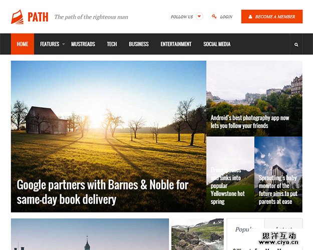 Path 是一个响应式,多功能的网站,使用范围也非常广。清爽现代的设计风格,响应式的布局,内含10个可定制的小插件和2套评论系统,以及许多吸引人的功能与特性。