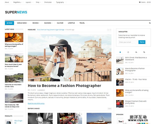 SuperNews 是一款响应式、灵活多用的主题。它支持托拽模块布局,支持WooCommerce 和许多实用的特性。这款主题设计灵活,使用XHTML代码确保对搜索引擎足够友好。