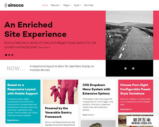 Sirocco 是一款先锋而优雅的响应式主题,包含多种布局和主题。主题使用了扁平而现代的设计风格,引人入胜又持久耐看。