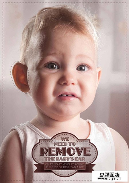 18、我们要把这个宝宝的耳朵 P 掉……或者至少往靠近脑袋的方向挪一挪……