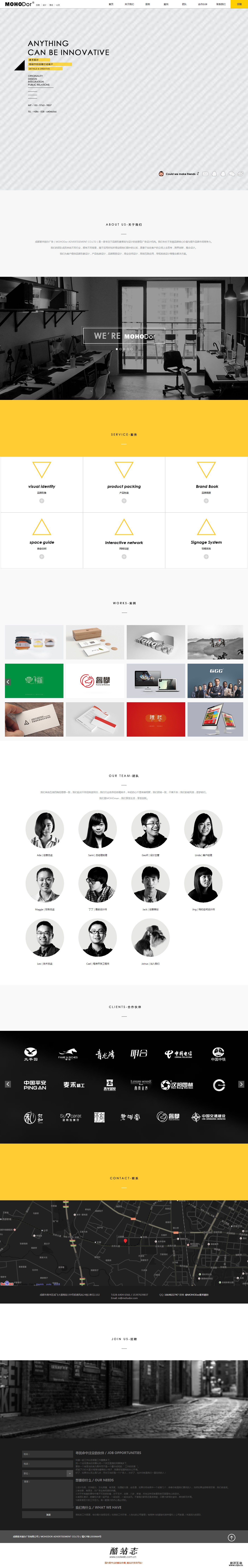 成都麦禾稻尔广告(MOHODor ADVERTISEMENT CO.LTD)是一家专注于品牌形象策划与设计的创意型广告设计机构。我们专长于发掘品牌核心价值与提升品牌市场竞争力。我们的团队成员来自不同行业,拥有不同背景,擅于运用所知所得诠释他们眼中的认知,更善于站在客户的立场上去思考,跨界创新,整合设计。我们为客户提供品牌形象设计,产品包装设计,品牌画册设计,商业空间设计,网络互联应用,导视系统设计等整合解决方案。