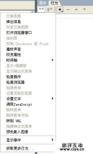 ◇显示事件:指定当前行为在哪个浏览器中起作用(这是【事件】菜单的子菜单)。在此菜单中进行的选择将确定【事件】菜单中显示哪些事件。较早的浏览器比新版本的浏览器支持的事件要少。在大多数情况下,选择的目标浏览器越普通,所显示的事件就越少。