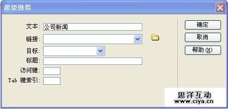 ◇访问键:在其中设置键盘等价键,以便在浏览器中选择该超级链接。