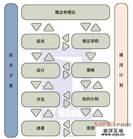 在图3-2中,你能看到项目的技术开发贯穿整个计划流程。在各个方向上都应当试试,思考一下一个阶段可能会影响另一个阶段的情况。