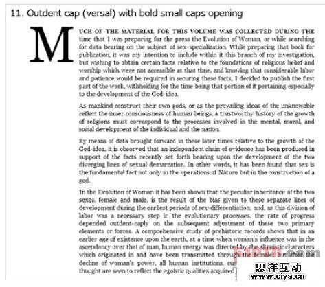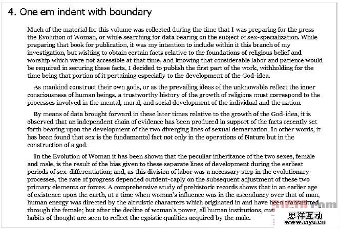| (点击查看大图)段落的样式不必一定惹人烦。在这个例子中,第一段的第一行左对齐,后面段落的第一行有1em 的缩进,右侧未对齐,V 型边界。 |