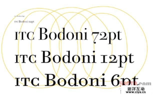 当然,上述的很多字体必须处理尺寸问题。随着可拉伸数字化字体的到来,任何字体的任何尺寸都可以使用,以往耗时的字号调整过程已经被抛弃了。后果是很多设计因为这种便利而受害。一些展示字体在小号时太过于华丽或脆弱,用来显示文本的字体在被放大后显得过于笨拙。