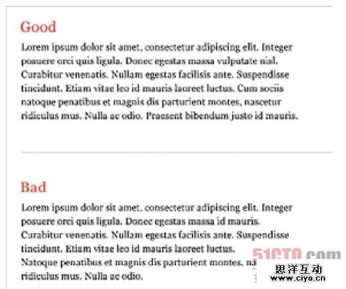 在排列没有对齐的文本块时,要确保使碎片(没有对齐的边缘)平衡,不要产生任何突兀的孔洞或难看的形状。一个坏的碎片可以扰乱视线并分散用户的注意力。一个好的碎片有一个柔和的非整齐的边缘,没有一行太长或太短。没有办法通过CSS 控制它,所以你必须通过手动调整来达到好的效果。