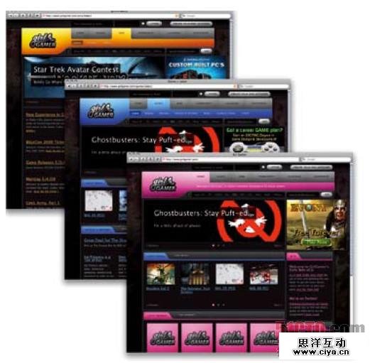 Girlgamer.com 使用了主题颜色来对网站不同部分进行区分。不同 之处虽然相对细微,但是却能让各部分很好地展示自己。 |