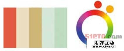 近似互补:使用两个互补色调和一个与其中一个颜色相近色调