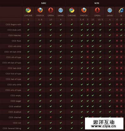 可以看出,全盘支持CSS 3属性的浏览器有Chrome和Safari,而且不管是Mac平台还是Windows平台全支持。