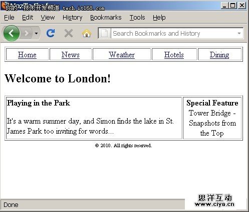可以看到有头部,尾部和页面的主体三部分组成,下面给出它们的模版文件header.tpl:
