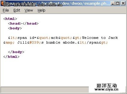 - $data['html']= '<span id="ack">Welcome to Jack & Jill\'s humble abode.</span>';