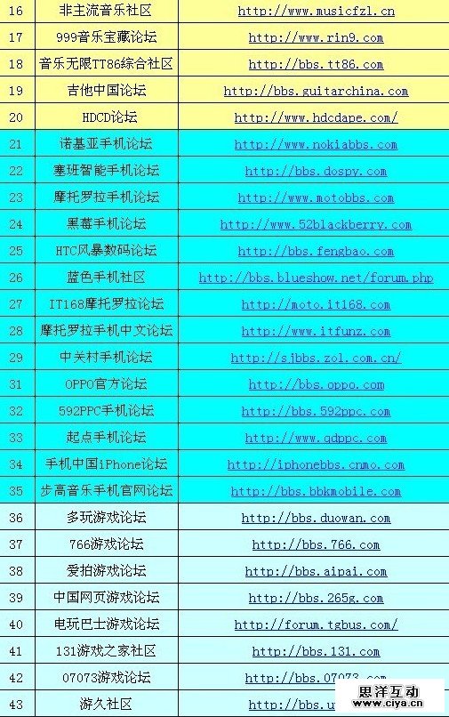 收集到自己想要的行业论坛数据以后,接着就是整理数据了在收集数据的过程中,难免会收集到重复的数据,收集的数据越多,重复的可能性就越大。所以我用Excel表格进行筛选。不同行业的论坛,就用不同的颜色给标识起来,这样看起来就一目了然,很快就能看见哪个论坛是重复收集的了。(如图1)