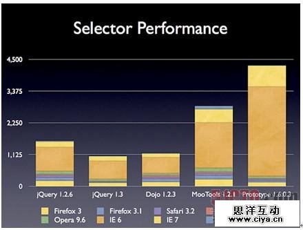 Sizzle选择器引擎目前成为jQuery框架默认的选择器引擎,相比原来的jQuery引擎,速度有很大的提升,如图2.3所示的各种选择器执行效率的对比。