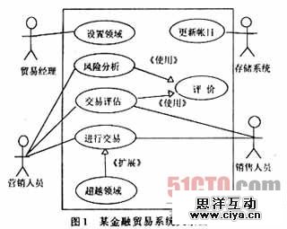 现以某金融贸易系统为例说明UML建模的具体过程。该过程主要包括:理解需求、分析、设计、实现、测试和配置。