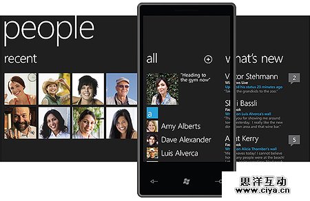 当信息没有框架进行区分和约束以后,信息的分类和信息的排布就变得更加重要了。windows phone 的界面则引入了一个叫做“hubs”的概念,你大可以想象他就是一个大大的集合体,他把你所有的信息像社区一样都整合在了一起,你需要的只是一个账户和一次登录,以后所有的信息(facebook 的好友,twitter 的留言,flickr 的照片等等)都会自动同步到你的手机上来。