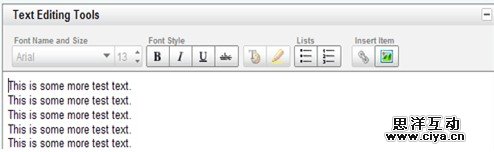 The Rich Text Editor是Yahoo YUI开发的,它可以取代标准HTML文本;支持文本字体选择,加粗,斜体 ,有序列表,无序列表,链接,拖放图片,工具栏通过插件是可扩展,能够实现高度的个性化设置.