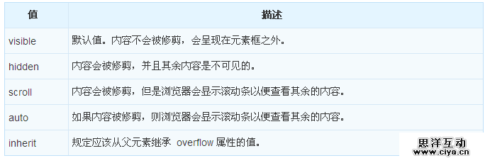 这个属性定义溢出元素内容区的内容会如何处理。如果值为 scroll,不论是否需要,用户代理都会提供一种滚动机制。因此,有可能即使元素框中可以放下所有内容也会出现滚动条。