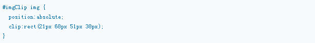 这里的绝对定位是相对于id为imgClip的div而言的,clip中的数值按照上右下左的顺序排列的。