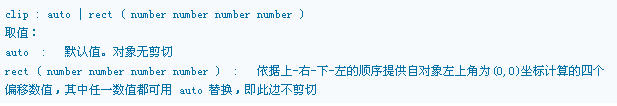 ◆clip属性值:auto|rect(top,right,bottom,left)