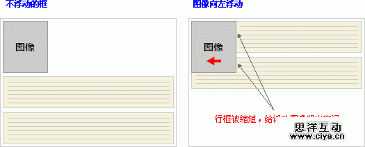 浮动框旁边的行框被缩短,从而给浮动框留出空间,行框围绕浮动框。