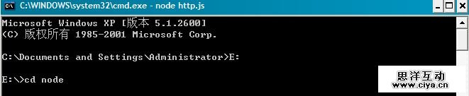 首先下载node.js,然后解压到E盘,改名为node,然后开始菜单输入cmd,用cd命令切换到nodejs的解压目录:
