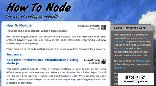 并不是所有的javascript语言都是浏览器端的,NodeJS是服务器端的最知名的框架。无论你是否是一个有经验的JS开发人员或者是寻找服务器端JS解决方案的人,How To Node都提供了大量的关于NodeJS的开发的资源。这个社区驱动的网站提供了非常多的Node教程资源库能够帮助大家开发,没有人能过不使用它来开发Node。