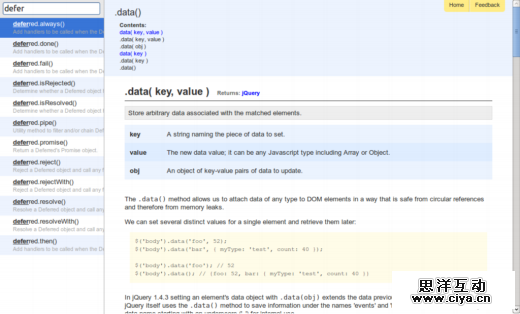 JQAPI是jQuery官方API外的选择。如果你是一个客户端javascript开发者,那么你肯定会在项目中使用到jQuery。无论你是用一次或者天天使用,你肯定都希望能使用最近的jQuery开发特性。每一个新版本的jQuery通过这中高效,有创意的方式快速浏览和查询来知道都提高了那些安全性和性能。UI使用非常友好,而且还提供了离线版本