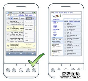 Gmail提供了一个移动版本,更加符合移动设备的访问方式