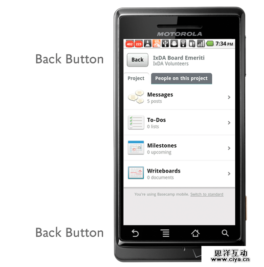 所以在设计移动Web体验时,直接让本地应用去完成返回功能就可以了。如果你需要让人们更快返回上一层,那么别使用“Back”来标记按钮。