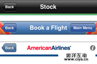 我对观摩不同产品的设计解决方案在多种平台上的移植调整很感兴趣,例如,很多iPhone本地应用在头部有一个显眼的“返回(back)”链接(图4.12)。iOS设备本身并没有设置一个物理的返回按钮,也没有为本地应用显示任何一个系统级操作(chrome actions)。