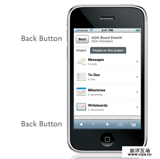 图4.14:Apple的浏览器在头部的工具栏中有一个永久的返回按钮