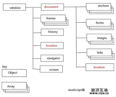 然后下来说一说document和location对象,首先,我在上面的BOM的体系结构图中,将这两个对象标记为了红颜色,为什么类?简单,是由于混乱。