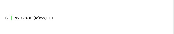 到目前为止,一切安好,直到 IE3 发布,当 IE3 发布的时候,Netscape 正如日中天,那时,很多服务器和程序已经部署了客户端探测机制,以便认出 Netscape,虽然现在看来,这很值得争议,但当时并没什么。当IE初次推出它们的User Agent 标志的时候,是这个样子: