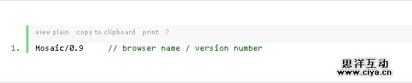 是否注意到其中的第一个单词 Mozilla/5.0,为什么 Safari 会被探测为 Mozilla,尽管 Safari 后来已经纠正这一问题,但仍然不能解释为什么它们要这样误导开发者。事实上,你会发现,绝大多数浏览器把他们的 User Agent 设置为 Mozilla,答案要回到10年前,这更多是一种策略。User Agent 是一段用来标识当前浏览器身份的字符串,世界上第一个浏览器Mosaic,曾这样标志自己: